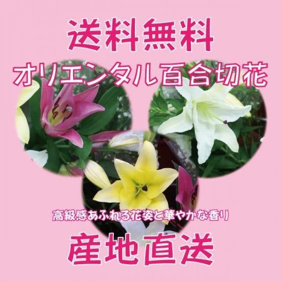 色、品種等はご指定頂けませんが、その日入荷した沖永良部島産のオリエンタル百合の中から良質のものを選りすぐってお届けいたします。