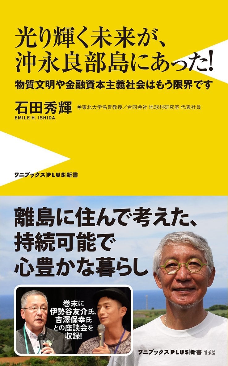 東北大学名誉教授 おきのえらぶ島在住のおきのえらぶ島観光親善大使 石田秀輝さんの新書!離島に住んで考えた持続可能で心豊かな暮らし 巻末に伊勢谷友介氏・吉澤保幸氏との座談会を収録!
